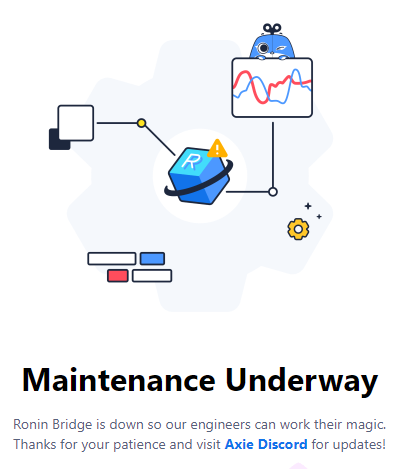현재도 ronin bridge 웹사이트는 아래 그림과 같이 닫혀 있으며, validator 승인 수를 5에서 8로 늘리는 등 수정 조치를 취하고 있는 것으로 확인된다.