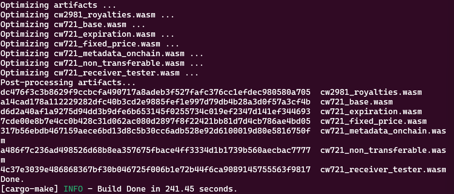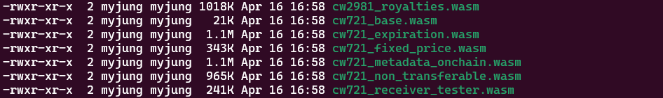 (cw721_base.wasm이 일반 build 시 더 작은데 이유를 찾아봐야겠다.)